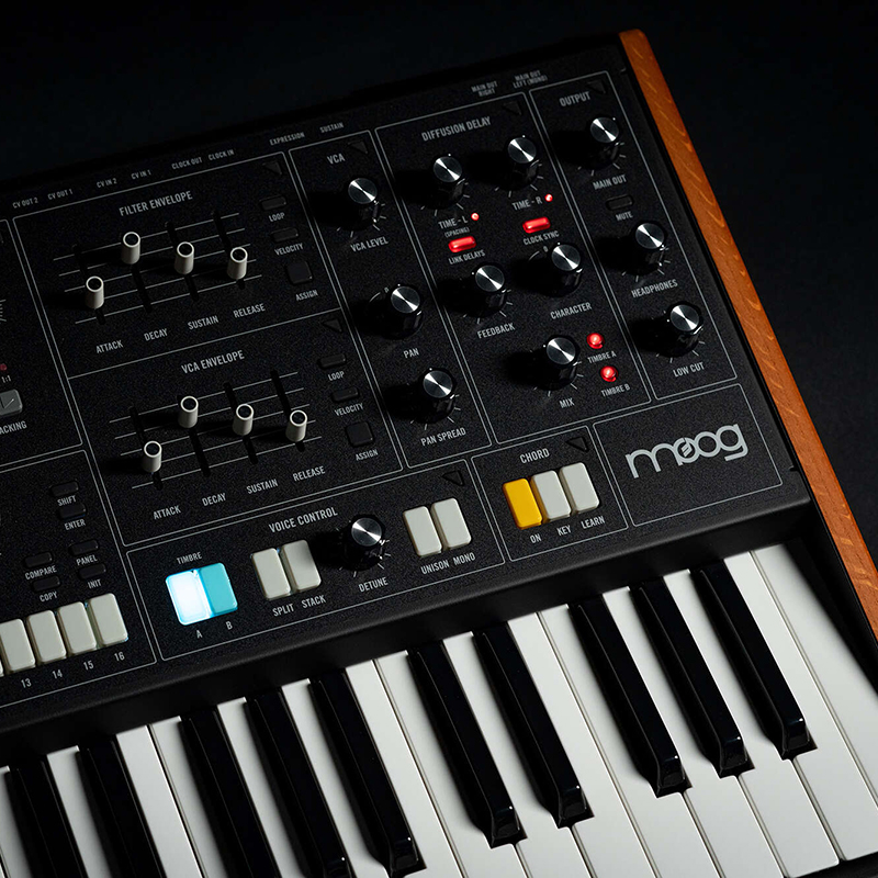 Muse继承了深受欢迎的 Moog 之声:结合了复古的分立式振荡器(源自Minimoog Voyager),并由饱和混音器、双晶体管梯形滤波器和立体声分立式放大器组成。